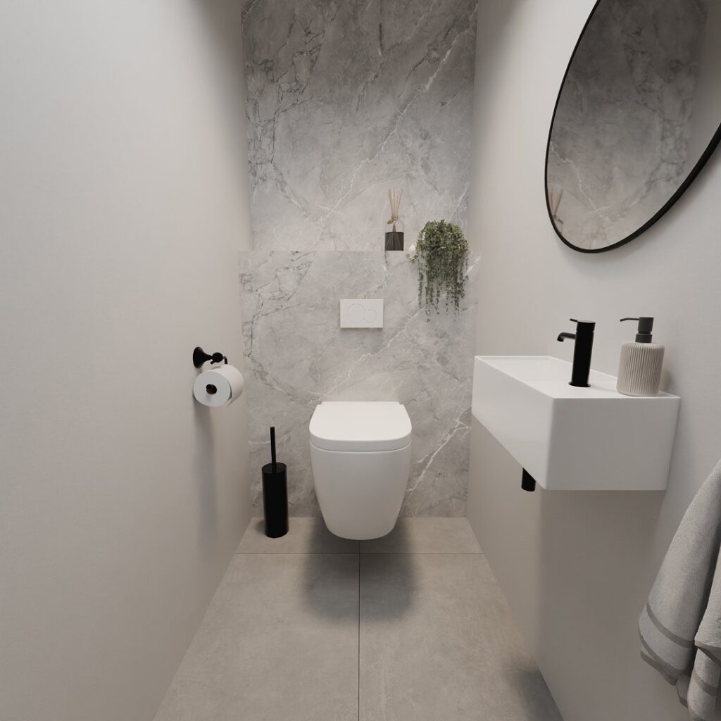 ✓ Für das Badezimmer empfehlen wir glatte, 100% wasserfeste Oberflächen wie Acrylglas – hygienisch, fugenlos und leicht zu reinigen. Kein Aufquellen, keine Schimmelbildung – stattdessen eine langlebige, hygienische Lösung mit minimalem Pflegeaufwand. Im WC oder dem Gäste-Bad bieten sich dezente Designs in Beige, Platingrau oder Steinoptik an, die dem Raum eine ruhige, gepflegte Atmosphäre verleihen. Für die Dusche sind unsere vollflächigen Alu-Verbundpaneele ideal – robust, wasserfest und einfach zu montieren, sogar auf alten Fliesen.